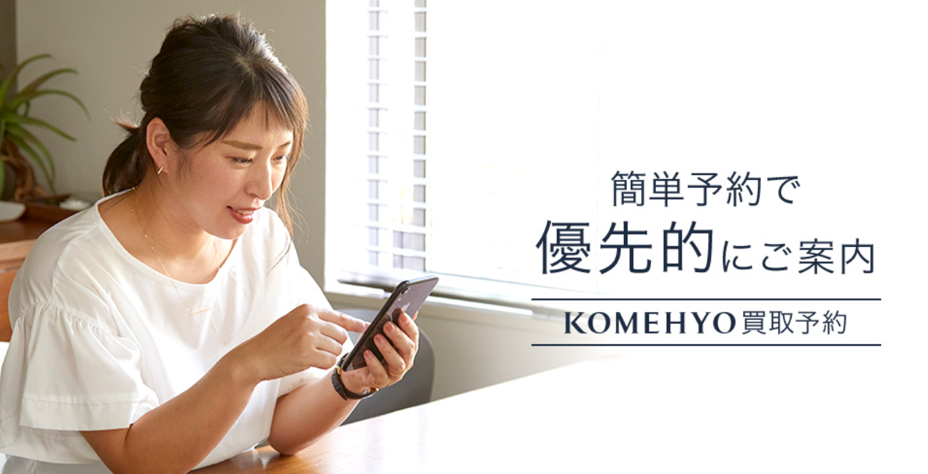 KOMEHYOは、ブランド品を中心に店頭買取、宅配買取、出張買取の3つの方法を用意している買取サービスです。店頭買取予約を利用する場合は、都合のよい日時で来店しやすく、店舗で相談しながら査定を受けたい方と相性があります。