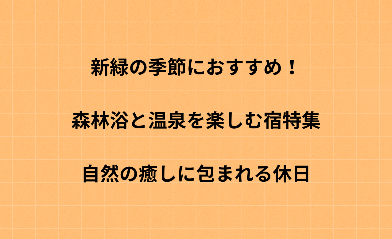 そんな時期にぴったりなのが、森林浴×温泉の旅です。